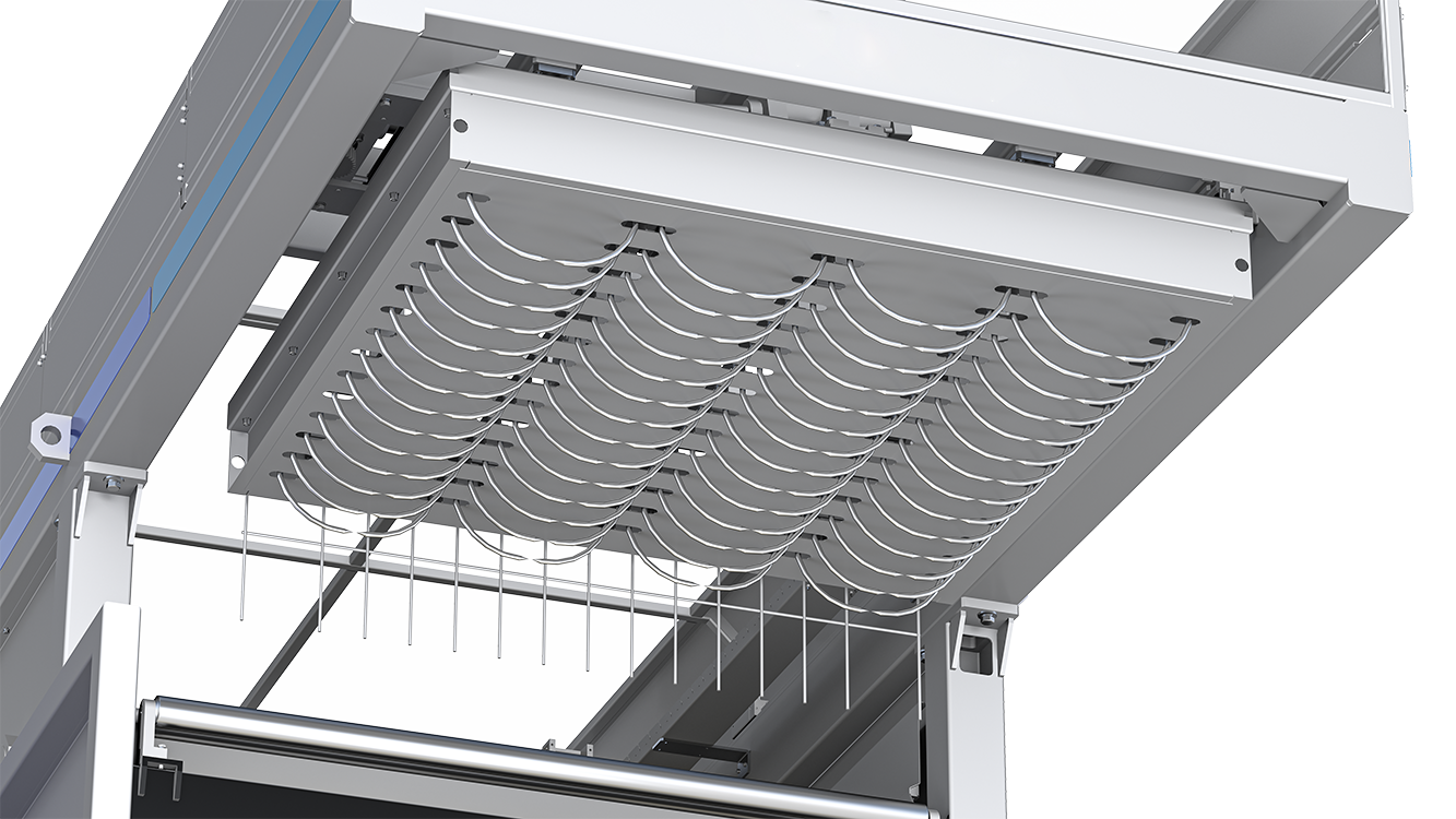 Onderdelen voor het snijden en reinigen van zakken snijden automatisch zakken en lossen materiaal af, waarbij eventuele resten worden verwijderd. Er zijn roosters geïnstalleerd om te voorkomen dat vreemde voorwerpen de bak binnendringen.